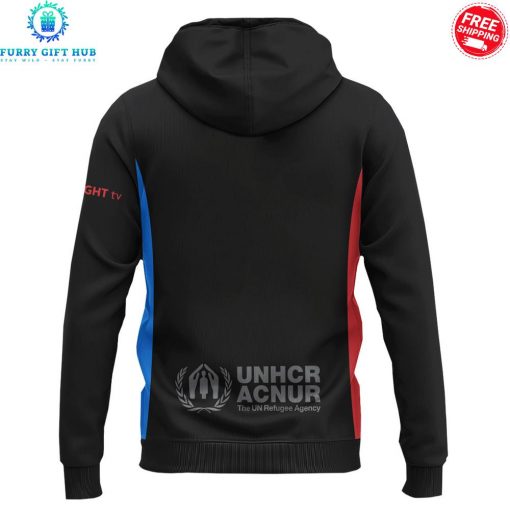 - The collection showcases a variety of apparel styles, including a t-shirt, a hoodie, and a polo shirt, each offering a different take on the collaborative branding. “NIGHT TV” and “AMBILIO” also appear on the sleeves.