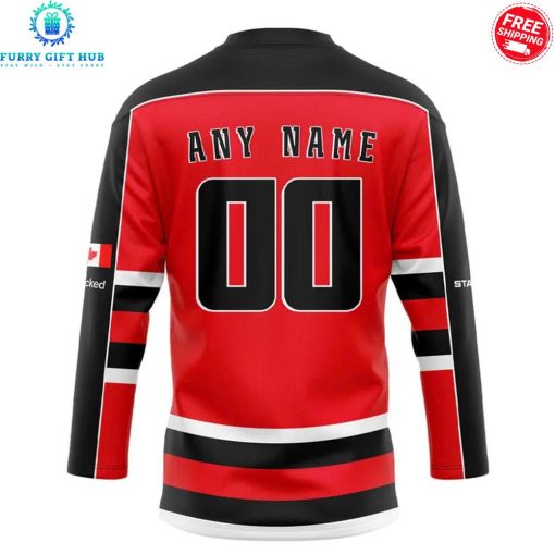 - The Sentinels Masters Toronto Personalized Special Hockey Jersey features a bold red and black design. The vibrant red serves as the primary color, while black accents on the sleeves and bottom create a striking contrast. White stripes add a classic hockey jersey touch.