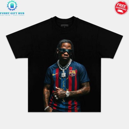 - This special t-shirt makes a great gift for Travis Scott fans, Barça supporters, or anyone who appreciates the fusion of music and football culture.